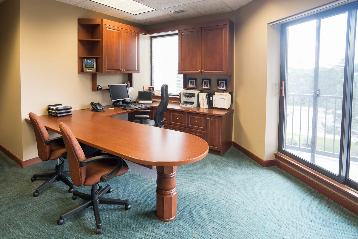 Here are some photos of a new office space we did for King Technology. It was a spacious office with a hidden mini-fridge in a stand alone cabinet to the side, and also a custom table.