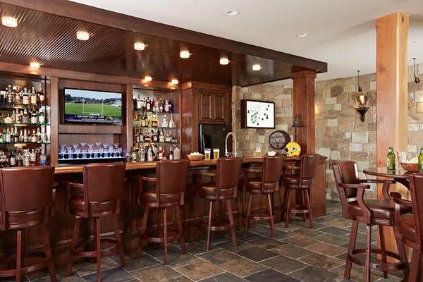 Here is an example of a full sized in house bar we've done for a client! Perfect environment to host the guys for the game!